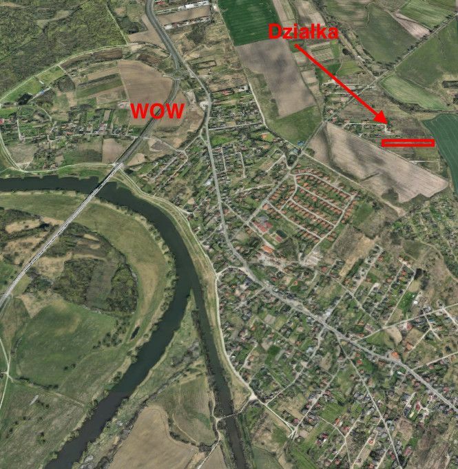 Działka o łącznej powierzchni 3400 m2 składa się z dwóch części. Pierwsza, nieco bardziej prostąkątną z większym dostępne do drogi, druga bardziej kwadratowa, gdzie można zagospodarować część ogrodową. Dojazd do niej obecnie jest drogą gruntową, a media są w drodze asfaltowej.