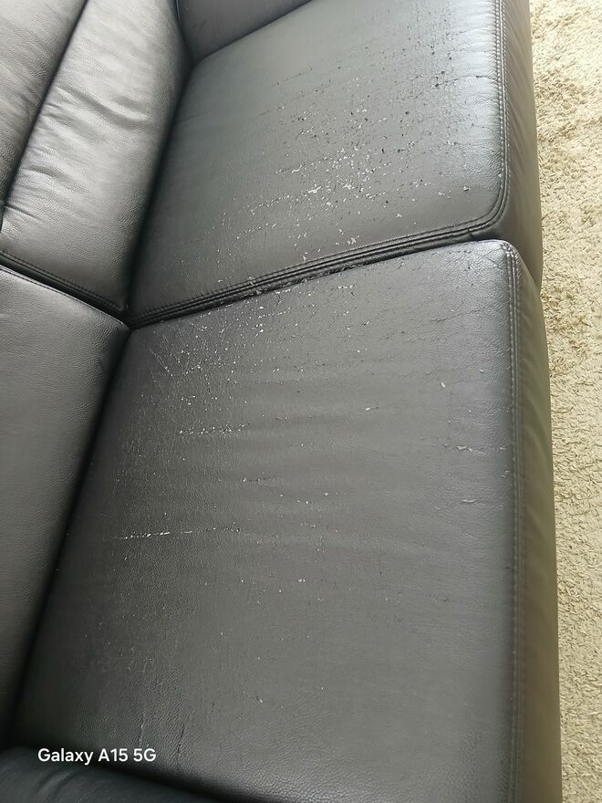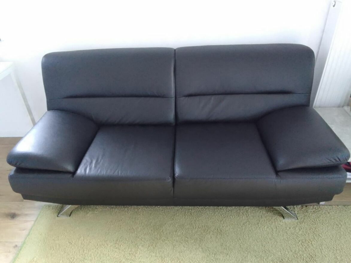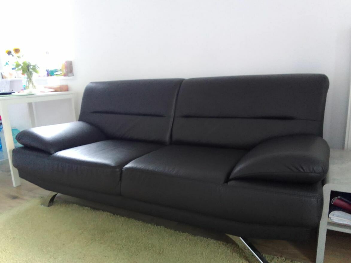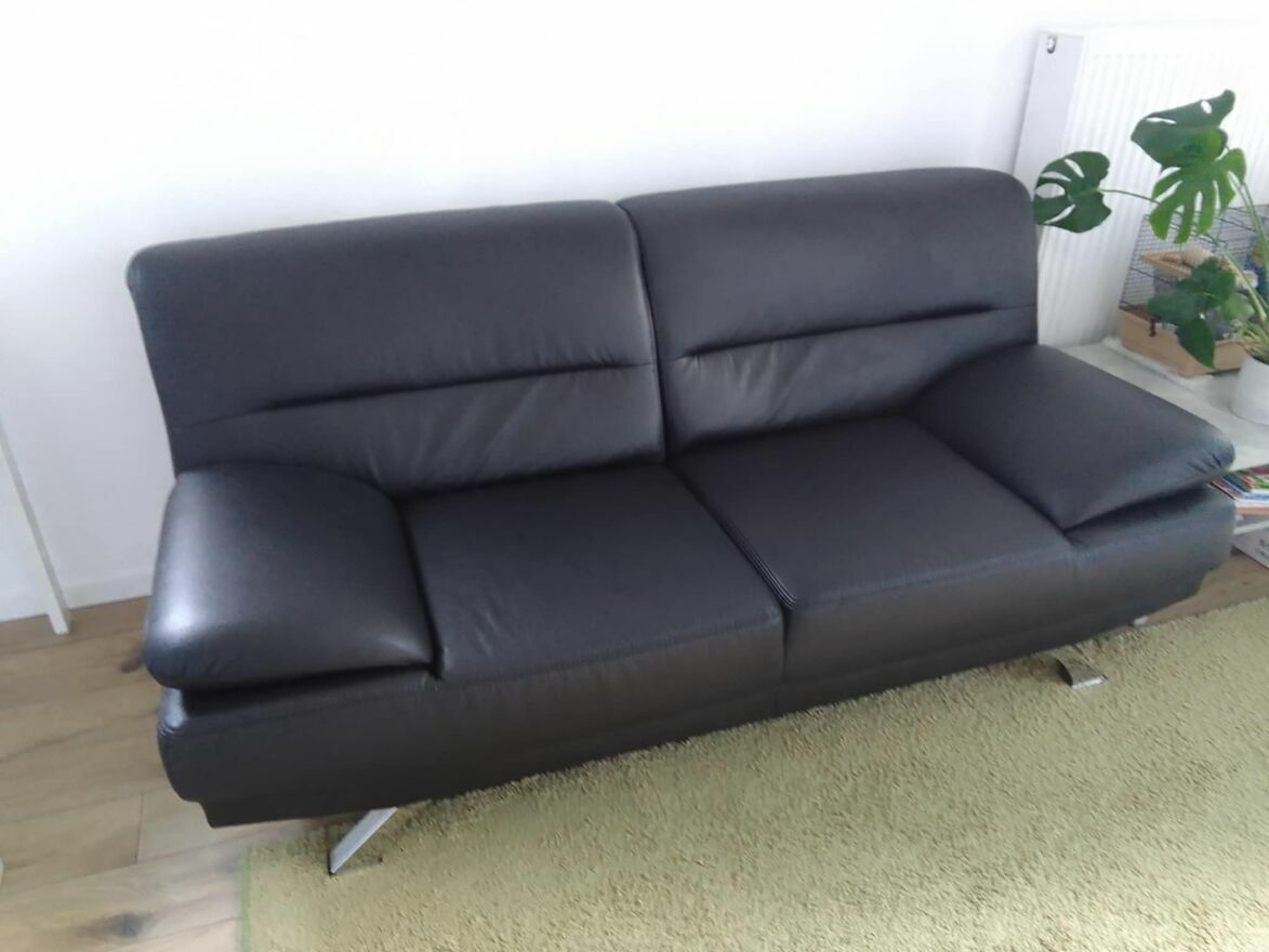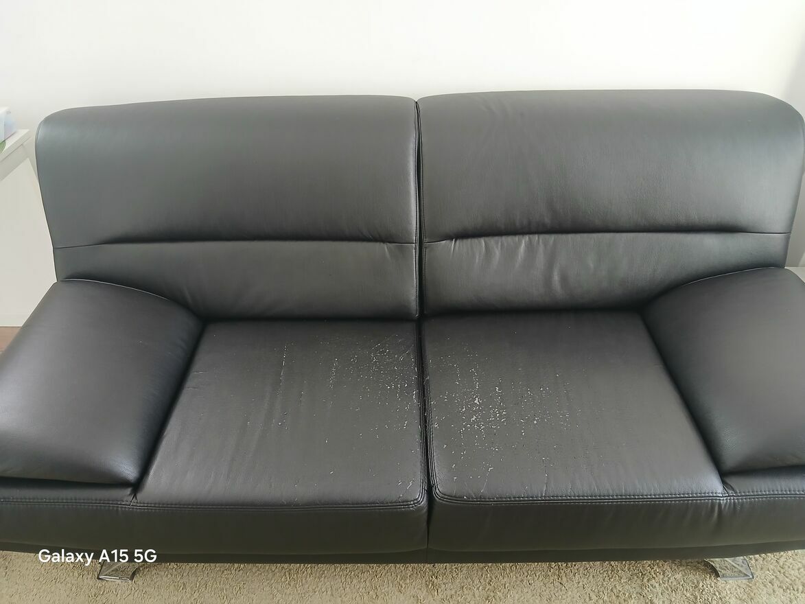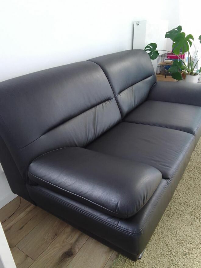Sprzedam ok. czteroletnią kanapę z Eko-skóry, czarną, bardzo wygodną do siedzenia i odpoczynku np.przed TV z komfortowymi podłokietnikami. Kanapa ma nieco podniszczone siedzisko, co widać na zdjęciach. Podaję wymiary: pełna szerokość mebla 190 cm, głębokość od końca oparcia do końca kanapy 85 cm, od podłogi do podłokietnika 55 cm, od siedziska do podłogi 40 cm. Idealna do salonu.Sprawdź zainteresowanie tym ogłoszeniem