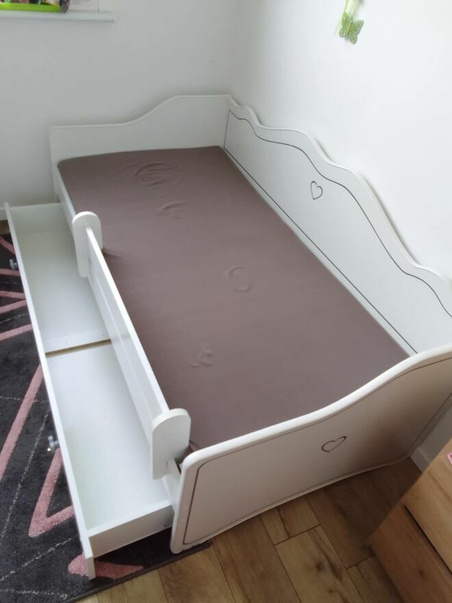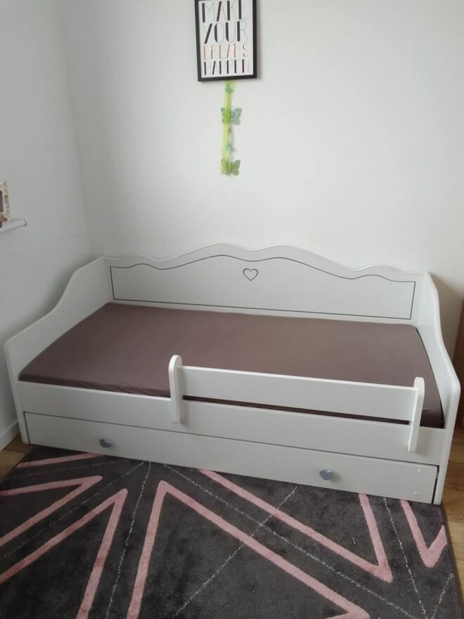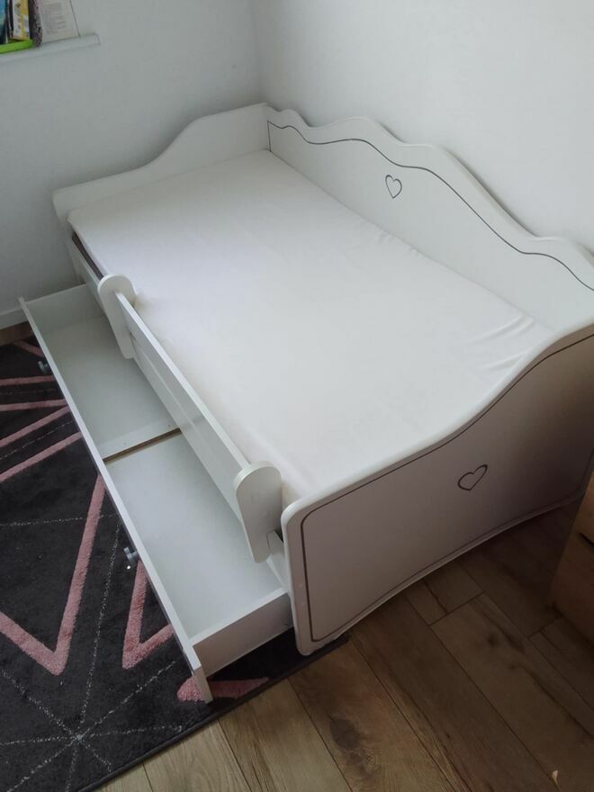 Mam na sprzedaż łóżeczko dziecięce dziewczęce o wymiarach 160 X 80 cm w bardzo dobrym stanie, z wygodnym, grubym, podwojnym materacem, szufladą na pościel. Jest praktycznie niezniszczone, moja córka rośnie, stąd zmiana umeblowania. Cena do negocjacji, odbiór osobisty.Magdalena